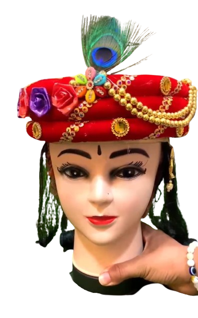 Add a touch of divine elegance to your Krishna ensemble with our exquisitely designed Krishna Pagadi. This traditional turban is often embellished with a beautiful peacock feather (mor-pankh), the iconic symbol of Lord Krishna, making it a standout accessory. Perfect for achieving a truly authentic and majestic appearance for Janmashtami, cultural events, or spiritual gatherings.