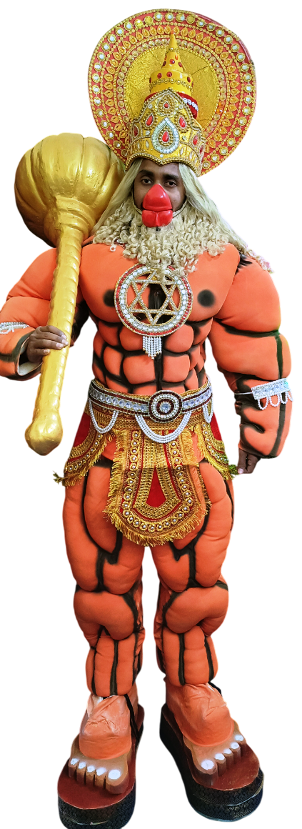 The set comes complete with a Sixpack Upper & Lower body, Gada, Wig, dhoti, har, waistband, crown (mukut), and matching accessories to create a commanding presence on stage. Whether you’re performing in a Ramleela, participating in cultural plays, or celebrating religious festivals, this costume ensures you look regal and divine.
