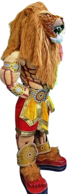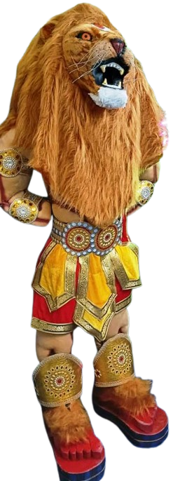 - Fierce Narasimha Mask: A dramatic, sculpted lion-face mask (or headpiece) representing the half-man, half-lion form of the deity.