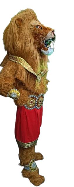 - Fierce Narasimha Mask: A dramatic, sculpted lion-face mask (or headpiece) representing the half-man, half-lion form of the deity.