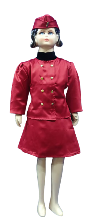 - Elegant Uniform Dress / Skirt-Suit: A stylish and comfortable uniform dress (often an A-line or straight cut) or a skirt paired with a matching jacket/blouse, typically in classic airline colors like maroon. Crafted from soft, durable, and comfortable polyester blends or structured cotton fabric, ensuring a smart appearance and ease of movement.