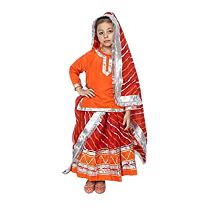 Dress your little one in the lively spirit and earthy charm of Haryana with our authentic Traditional Haryanvi Ghagra Kurti with Odhni set for girls. This vibrant costume embodies the rich cultural heritage, practical design, and robust spirit of the Haryanvi people, making it perfect for celebrating local festivals, school cultural events, folk dance performances , fancy dress competitions.
