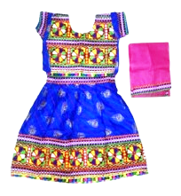 Each set features a beautifully crafted lehenga (skirt), often adorned with traditional motifs, delicate embroidery, or vibrant prints that reflect the spirit of devotion. It’s paired with a complementing choli (blouse) and a graceful dupatta (scarf), completing the authentic traditional look. Made from comfortable, high-quality fabrics, this Radha Lehenga allows for graceful movement and comfortable wear, ensuring your little one (or yourself) radiates peace and beauty throughout any celebration.