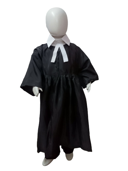 - Formal Black Advocate’s Coat: The defining element of a lawyer’s attire, a smart black long-sleeved coat (often a blazer-style or traditional advocate’s gown style, adapted for kids). Crafted from comfortable and durable polyester blend or structured cotton fabric, ensuring a sharp and professional appearance.