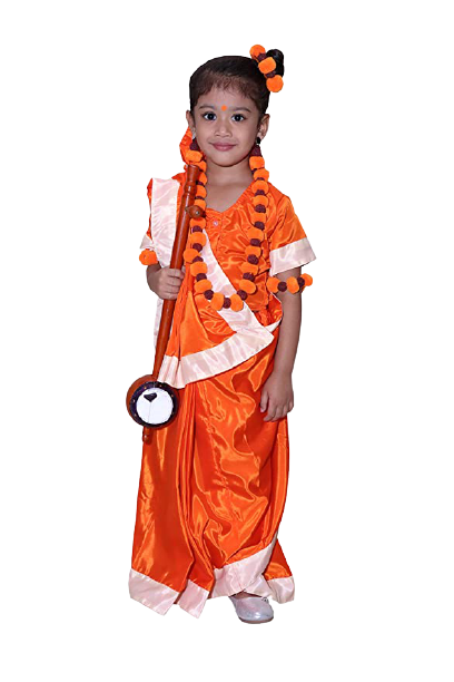 Meera Bai Mythological Fancy Dress Costume for Kids! Perfect for cultural events, school functions, fancy dress competitions, or religious celebrations, this meticulously designed outfit allows your child to embody the beloved remover of obstacles.