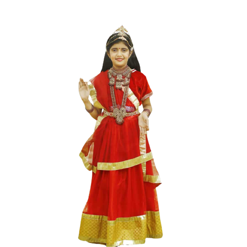 Rani Sita Mythological Fancy Dress Costume for Kids! Perfect for cultural events, school functions, fancy dress competitions, or religious celebrations, this meticulously designed outfit allows your child to embody the beloved remover of obstacles.