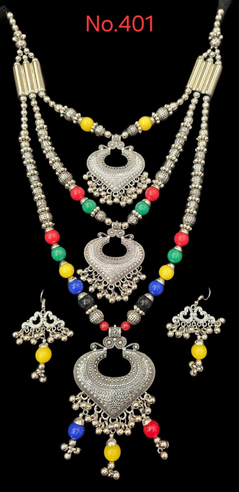 • Wide Range of Designs: Our collection includes a variety of pieces to suit every style and occasion. Explore our elegant oxidized jhumkas, statement-making chokers, intricate necklaces, detailed rings, and chunky bracelets. Many pieces are also embellished with colorful beads, stones, and ghungroos (small metallic bells) to add an extra pop of color and charm.