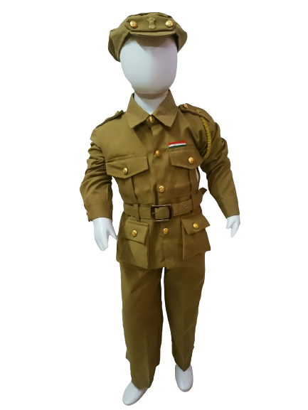 - Classic Police Uniform Shirt: A smart, full-sleeved or half-sleeved shirt, typically in the iconic khaki or dark blue color . It may feature imitation pockets and buttons for a realistic look. Crafted from comfortable and durable cotton or poly-cotton blend fabric.